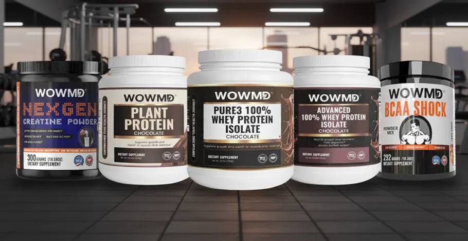 WOWMD BCAA Shock | WOWMD Pure3 100% Whey Protein Isolate (Chocolate) | WOWMD Advanced 100% Whey Protein Isolate (Chocolate) | WOWMD Plant Protein (Chocolate) | Transparent Labs Creatine HMB | |